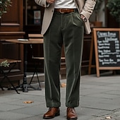 More information about Men's Trousers Dress Pants Velvet Pants Front Pocket Straight Leg Plain Comfort Full Length Outdoor Business Daily Fashion Smart Casual Green Inelastic