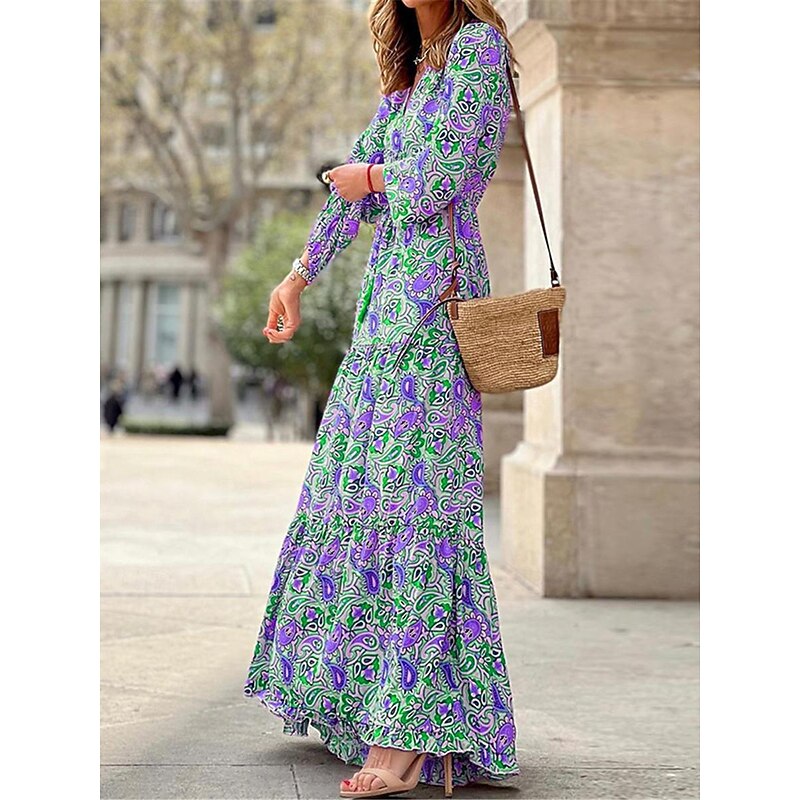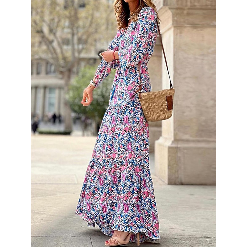HOT ! Women's Long Dress Maxi Dress Paisley Dress Casual Dress Boho Chic Dresses Boho Dress Bohemia Ethnic A Line Vacation Street Holiday Loose Fit Paisley Long Sleeve V Neck Pink Blue Green Summer Spring