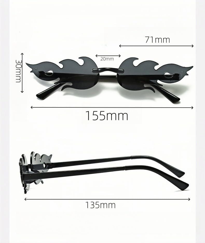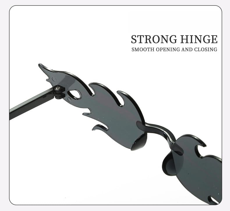 • Novelty:stylish frameless flame glasses that elevate your overall fashion sense. you can wear them at parties, concerts, halloween, cosplay, christmas, festive occasions like mardi gras and st. patrick’s day, helping you capture cool and fun photos.