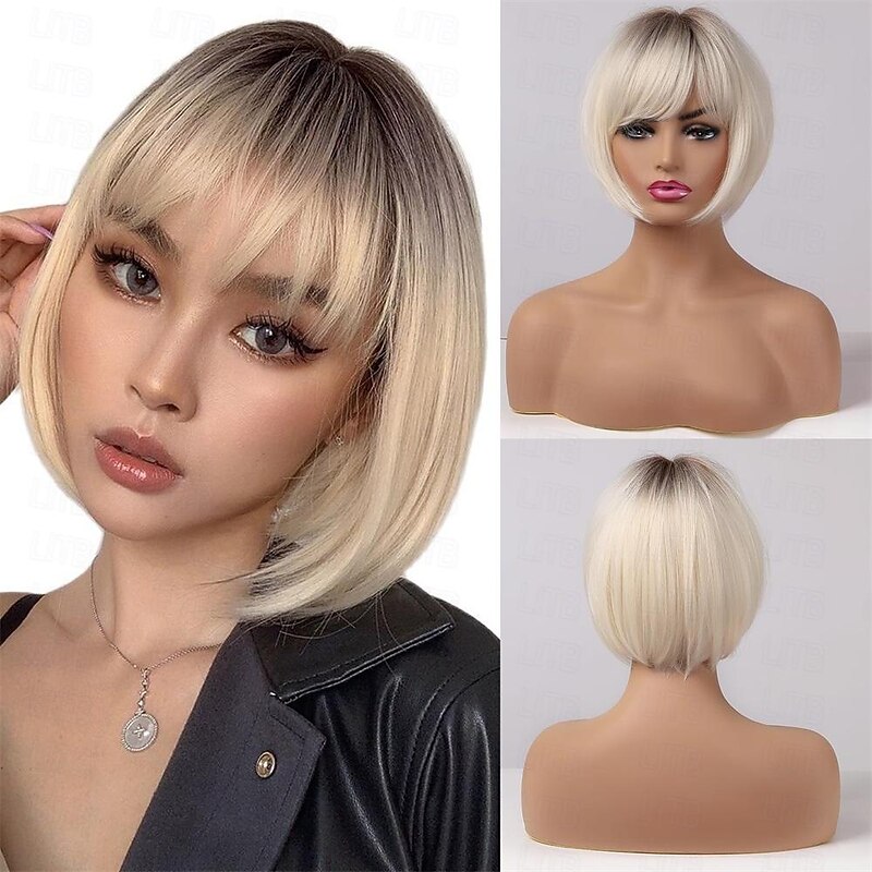 $18.49 - Blonde Wig with Bangs Short Wavy Ombre Blond Wigs with Dark Roots for Women Synthetic Heat Resistant Hair Natural Looking Cute Wigs for Carnival/Christmas/Cosplay/Party 2025. Shop for cheap Party Wigs online? Buy at lightinthebox.com on sale today!