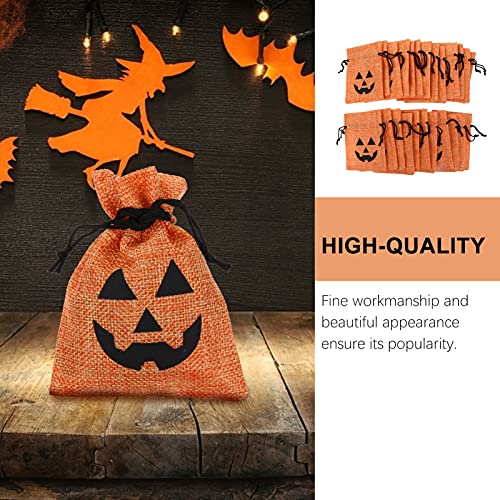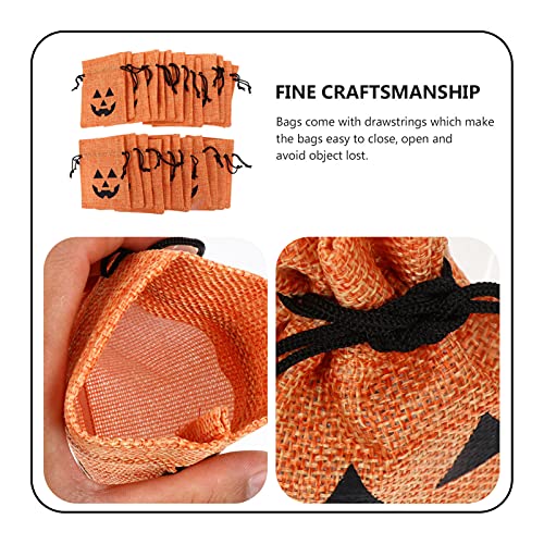 BESPORTBLE Halloween Pumpkin Burlap Bags with Drawstring, 25Pcs Halloween Trick or Treat Candy Bags- Orange Burlap Favor Sacks for Party Favors Small Gift Bags, 4X3 Inches 7