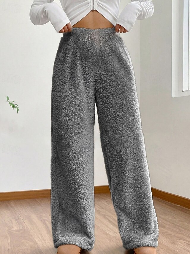 Women's Wide Leg Slacks Fashion Casual Full Length Mid Waist Plain Elastic Waist Thermal Warm Inelastic Stretchy Formal Vacation Street Light Gray Dark-Gray Camel Grey Winter Regular Fit Loose Fit 8