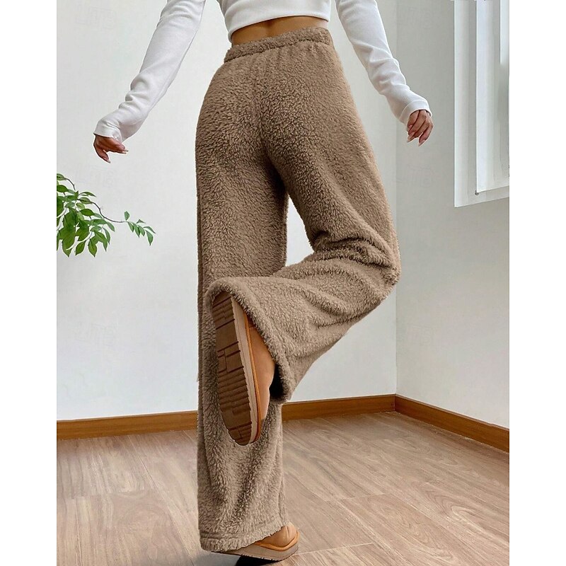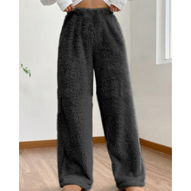 More information about Women's Wide Leg Slacks Fashion Casual Full Length Mid Waist Plain Elastic Waist Thermal Warm Inelastic Stretchy Formal Vacation Street Light Gray Dark-Gray Camel Grey Winter Regular Fit Loose Fit