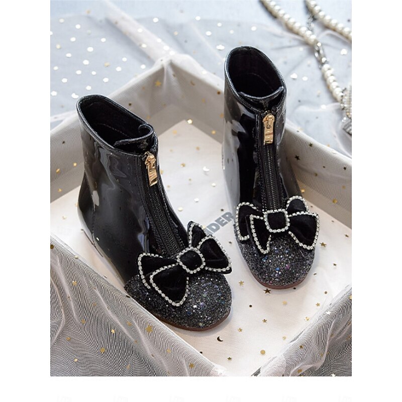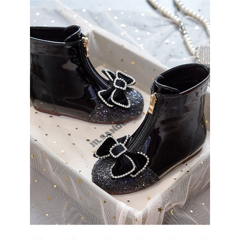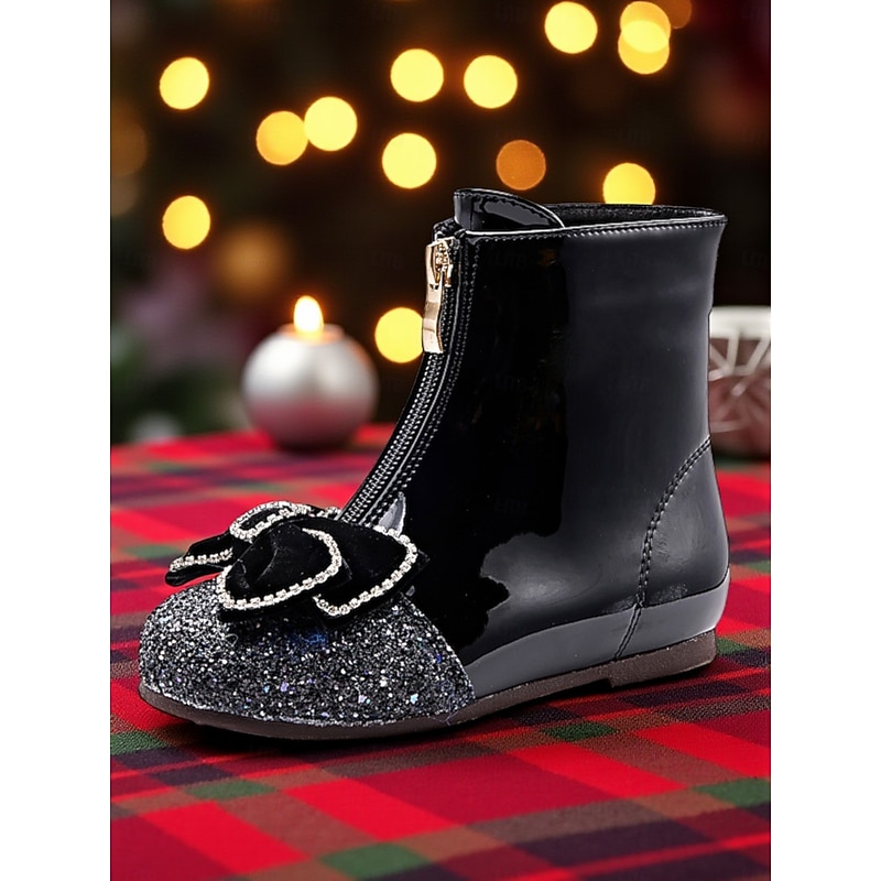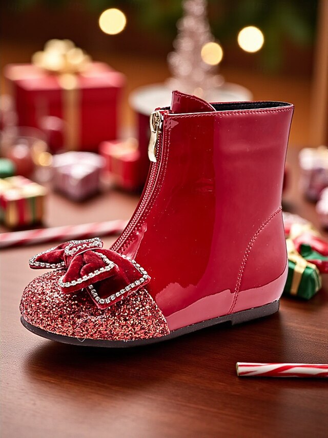 HOT ! Girl's Red Glitter Bow Boots - Shiny Patent Leather Ankle Boots with Rhinestone Detailing for Parties and Dress-Up