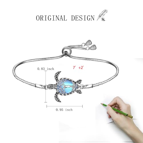 HOT ! Turtle Bracelet Moonstone Tree of Life Sea Turtle Gifts for Women Sterling Silver Adjustable Beach Hawaiian Sea Jewelry Ocean Gifts