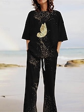 More information about Women's Active Fashion Pants Sets 3/4 Length Sleeve Crew Neck Butterfly Print Vacation Daily Holiday Black Gray Summer Regular Fit