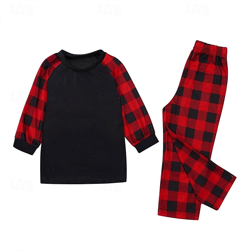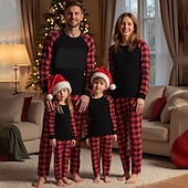 HOT ! Family Pajamas Plaid Home Patchwork Red Long Sleeve Active Matching Outfits