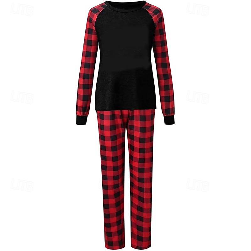 More information about Family Pajamas Plaid Home Patchwork Red Long Sleeve Active Matching Outfits