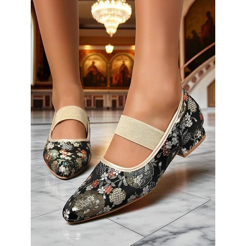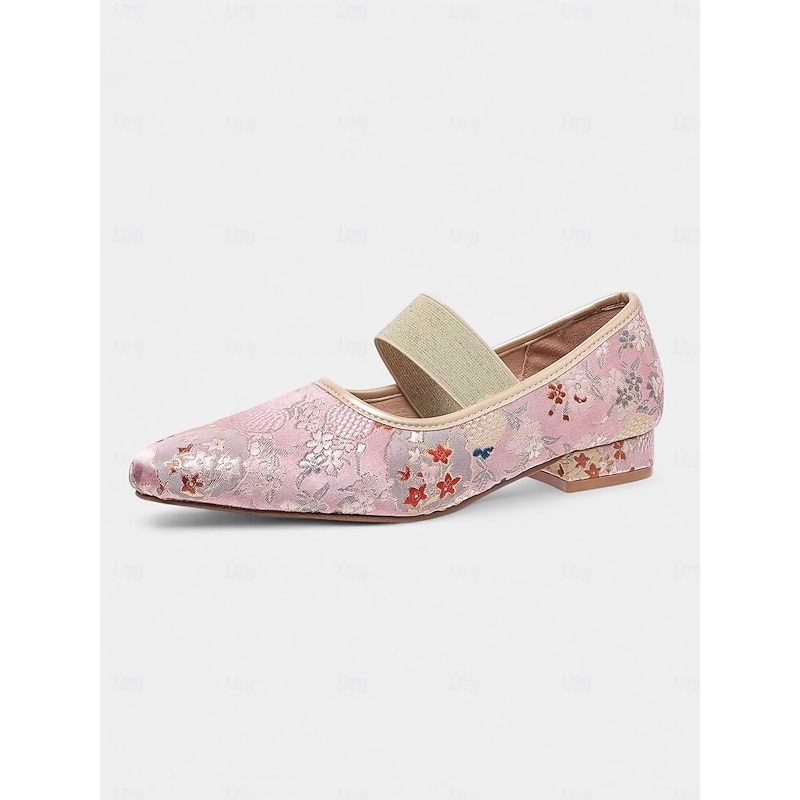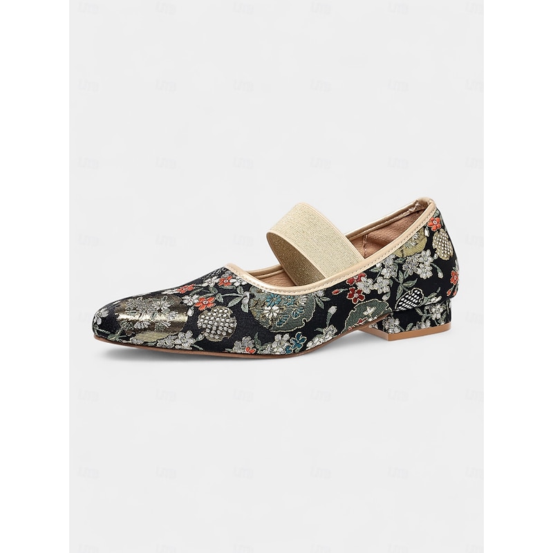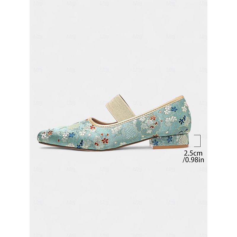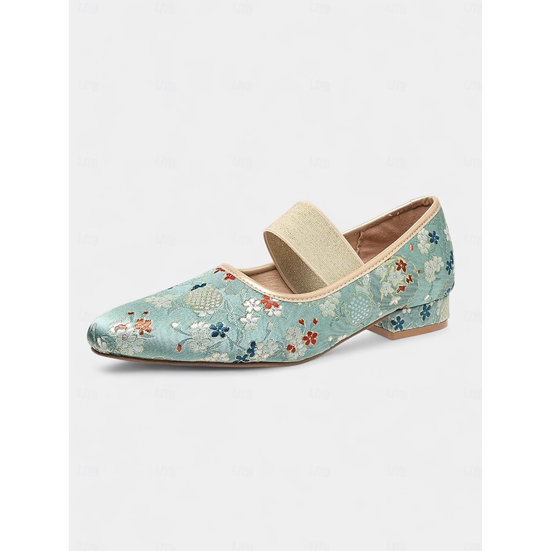 More information about Women's Light Blue Jacquard Mary Jane Flats - Rococo Inspired Comfortable Walking Shoes with Floral Embroidery and Elastic Strap, Medieval Fairy Tale Style for Vintage Lovers, Costume Parties, and Dai