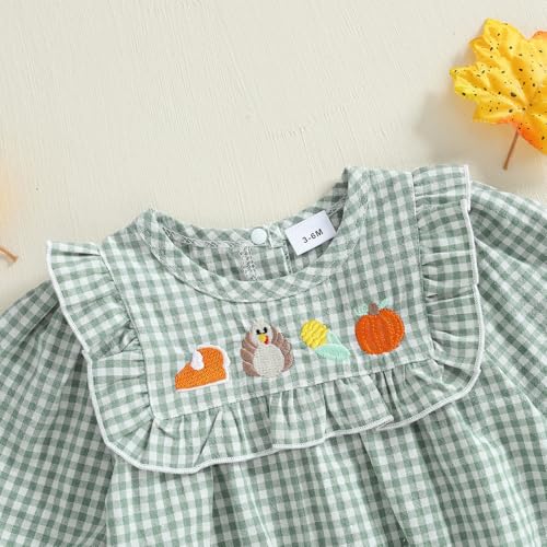 • Feature: Cute turkey embroidered, ruffle details, puff long sleeve, plaid bubble romper baby girl, snap closure at the crotch, easy for mama to diaper. Thanksgiving outfit for baby girls, 1st thanksgiving baby girl outfit, cute and lovely