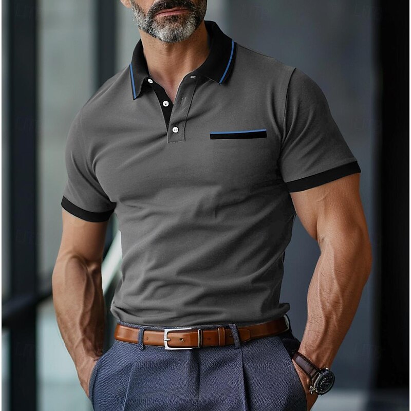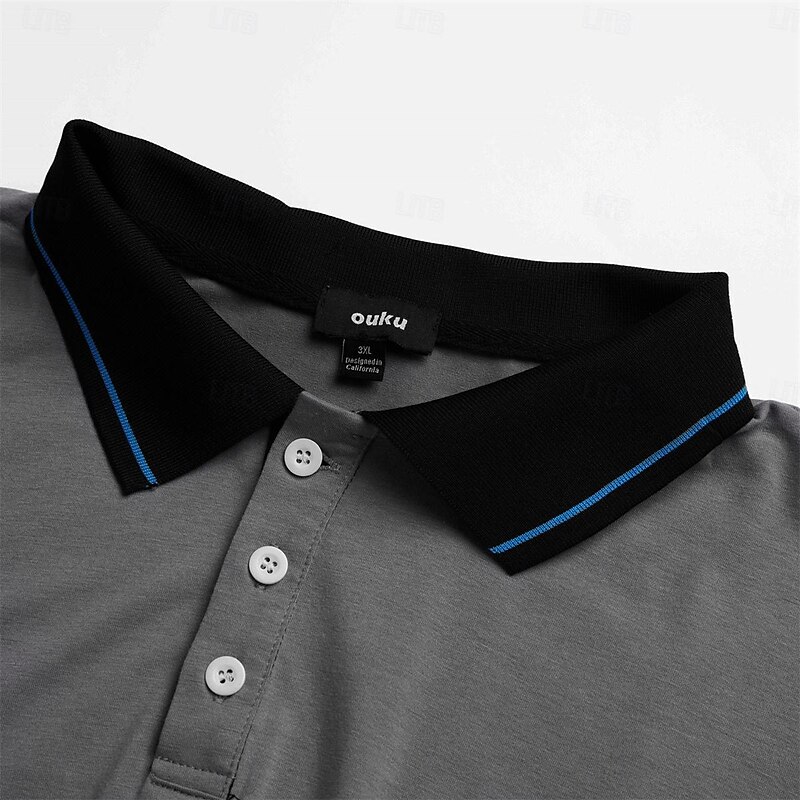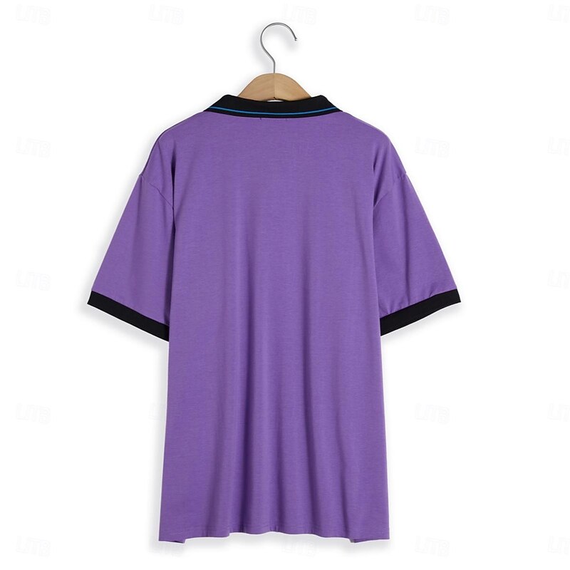 More information about Men's Polo Shirts Golf Shirt Casual Holiday Ribbed Polo Collar Classic Short Sleeve Fashion Basic Color Block Patchwork Pocket Summer Regular Fit Purple Grey Polo Shirts