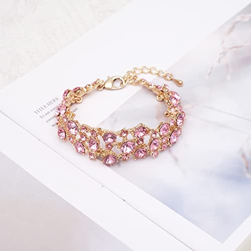 Women's Statement Necklace Earrings Link Bracelet Set for Bride Austrian Crystal Wedding Bridal Costume Jewelry Sets 3