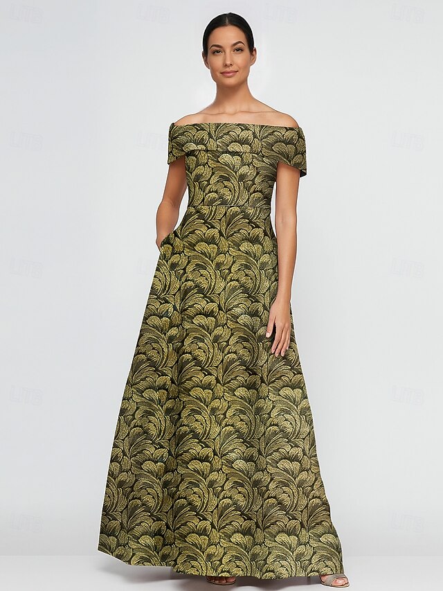 $144.99 - Jacquard Brocade Floral A-Line Cocktail Dresses Elegant Dress Formal Wedding Floor Length Short Sleeve Off Shoulder Nylon with Pocket 2025. Shop for cheap A-Line Evening Dresses online? Buy at lightinthebox.com on sale today!