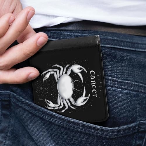 HOT ! Zodiac Sign C-ancer Slim Men's Bi-fold Wallets with 6 Card Slot Leather Travel Purse Coin Clip