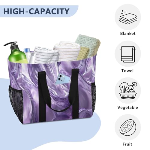 YETTASBIN Liquid Marble Large Foldable Travel Tote Bag, Lightweight Waterproof Swim Pool Bag with Handles & Pocket for Beach Outdoor, Reusable Grocery Bag for Kitchen, Shopping 7