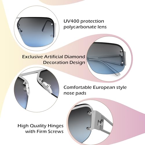 More information about FEISEDY Trendy Aviator Sunglasses for Women Men Retro Metal Rimless Frame Square Shades B2985