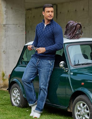 COOFANDY Quarter Zip Pullover Men Dress Sweaters Long Sleeve Jacquard Checkered Sweater 5