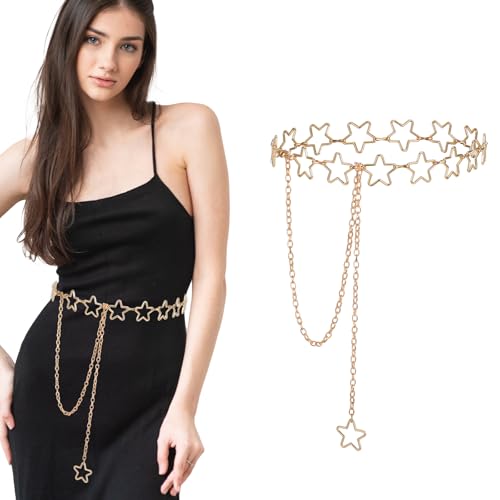 HOT ! Star Waist Chain Gold Stars Belt Y2k Belt Metal Belly Chains Adjustable Star Chain Belts for Women Dresses Skirts Jeans