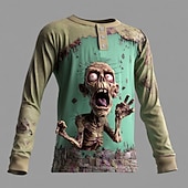 HOT ! Men's Halloween Zombies Henley Shirt Long Sleeve Fashion Cute Daily Casual Holiday Going out Fall Spring & Fall Blue Green Purple Khaki Henley Henley T-Shirt
