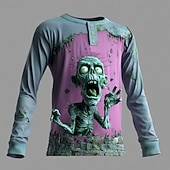 Men's Halloween Zombies Henley Shirt Long Sleeve Fashion Cute Daily Casual Holiday Going out Fall Spring &  Fall Blue Green Purple Khaki Henley Henley T-Shirt 7