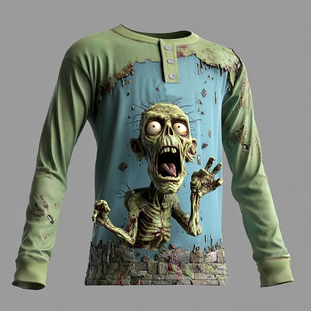 More information about Men's Halloween Zombies Henley Shirt Long Sleeve Fashion Cute Daily Casual Holiday Going out Fall Spring & Fall Blue Green Purple Khaki Henley Henley T-Shirt