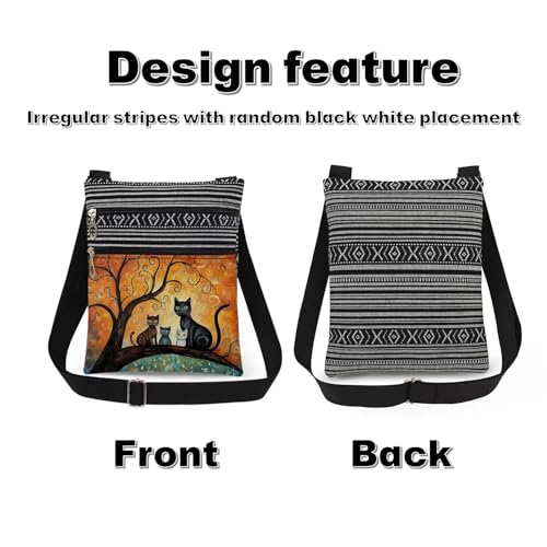 HOT ! Cat Tree Print Crossbody Bag Adjustable Unisex Zipper Shoulder Bag Birthdays Gift for Women Outdoor Travel Cat Lovers Gift Men Purse