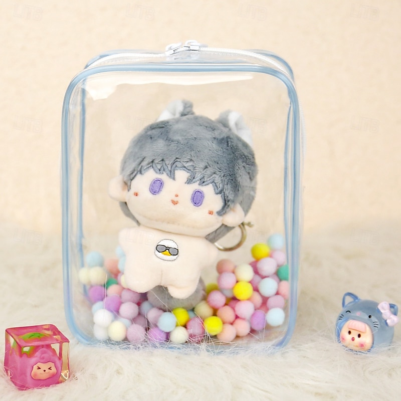 Clear Bag Keychain For 17/15cm Plush Doll(NO DOLL)Hanging Display CaseProtective CasePlastic PVC Storage Box (Clear Bag) 7