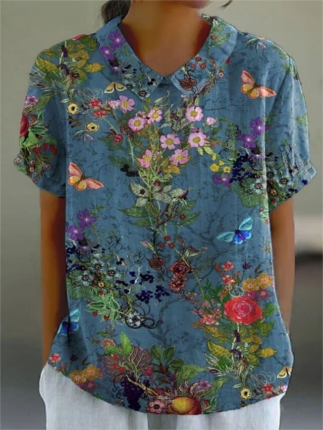 More information about Women's Shirt Floral Stylish Modern Short Sleeve Shirt Collar Regular Tops Daily Holiday Print Black White Pink Blue Summer