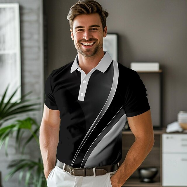 More information about Men's Striped Polo Shirts Golf Shirt Short Sleeve Polo Shirts Collared Shirts Business Casual WorkWear Formal Wear Festival Wear Buttons 3D Print Spring & Summer Green Gray