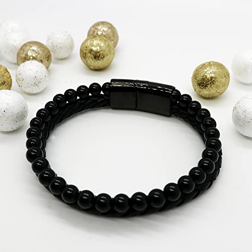 • Stone Bracelet with Genuine Leather Braided Bracelets: This bracelet is made of 6mm natural stone beads and genuine leather with a stainless steel magnetic clasp, making it a stylish and high-quality accessory.