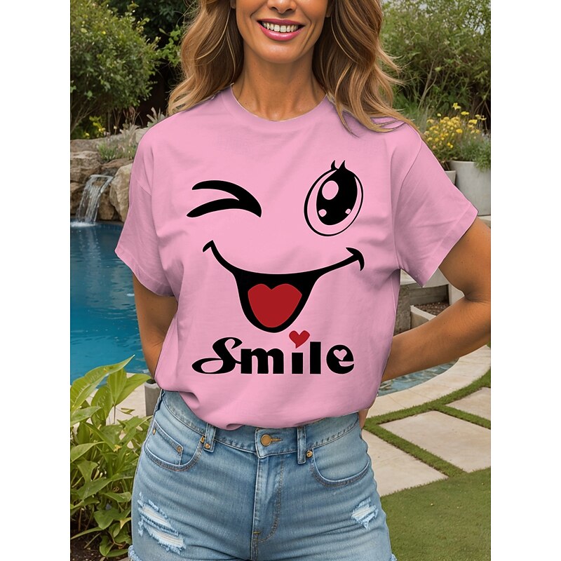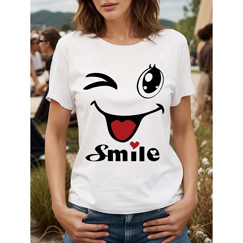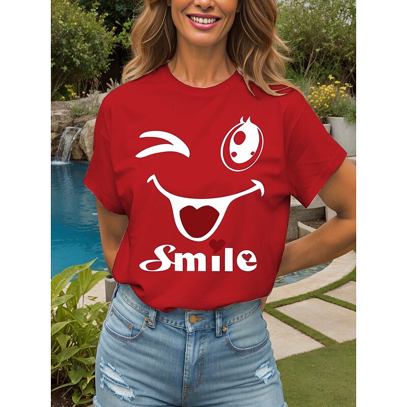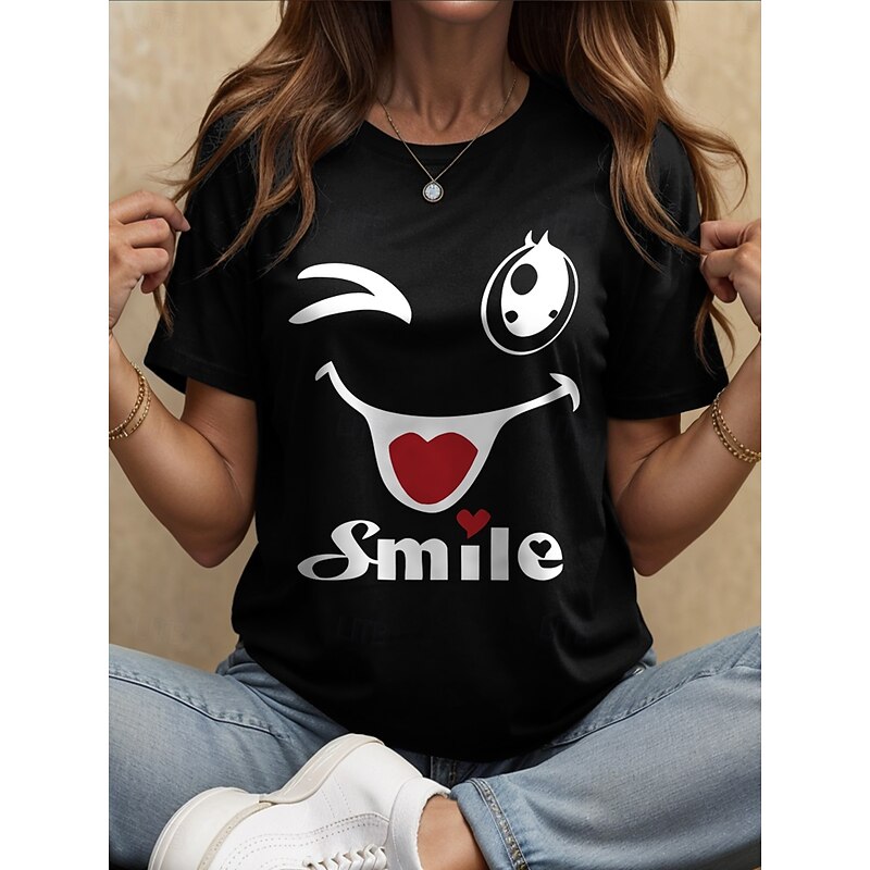 More information about Women's T Shirt Heart Graphic Letter Vintage Stylish Classic Short Sleeve Crew Neck Round Neck Regular Tops Daily Weekend Print Black White Yellow Pink Red Summer
