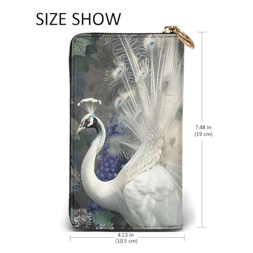 White Peacock Printed Long Wallet for Women Men Cute PU Leather Wallet with Coin Purse and Credit Card Holder 5