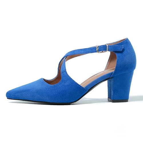 Women's Block Chunky Heel Pumps Cross Strap Closed Pinted Toe Low Heeled Dress Shoes 6
