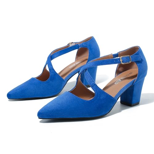 More information about Women's Block Chunky Heel Pumps Cross Strap Closed Pinted Toe Low Heeled Dress Shoes