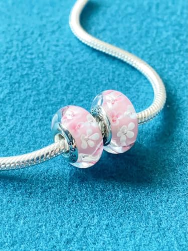 Original Murano Glass Charms for Pandora Bracelets, Authentic 925 Sterling Silver Charms for Bracelets, Murano Flowers Charms, Glass Beads fit Pandora Style Bracelet for Women 2