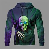 More information about Halloween Men's Skull Hoodie Fashion Daily Hooded Vacation Party Streetwear Dark Green Drawstring Pocket Printing Fall Winter Designer