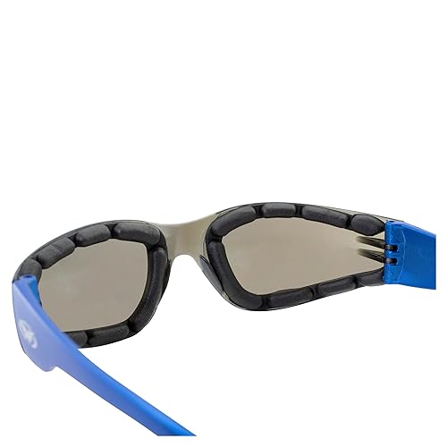Global Vision Eyewear Rider Foam Padded Motorcycle Safety Sunglasses Metallic Blue Frame w/Blue Mirror Lenses 5