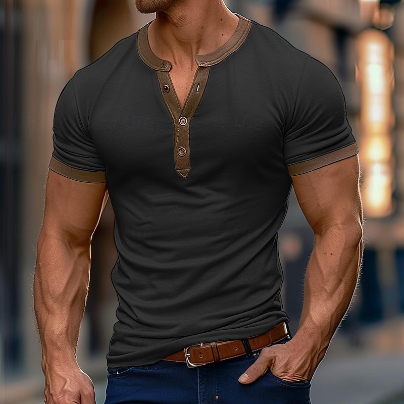 More information about Men's T shirt Tee Henley Shirt Tee Top Solid Color Henley Outdoor Casual Short Sleeve Button Clothing Apparel Cotton Blend Fashion Designer Comfortable