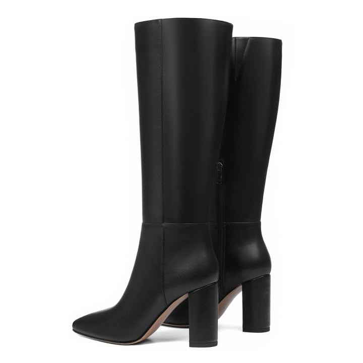 • [Tall Boots for Women]: These tall black boots for women are designed with sexy pointed-toe and chunky heel, making your stay on-trend with the fiercely chic, breathable and comfy, suitable for all seasons.
