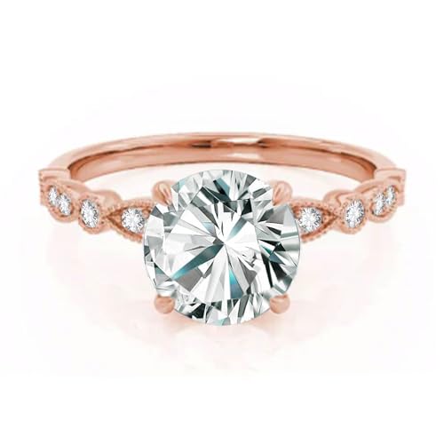 HOT ! 10K 14K 18K Solid Gold Moissanite Engagement Rings for Women, 1-3 CT Center Round Cut Moissanite Rings Bridal Set Promise Anniversary Wedding for Her Wife Size 4-11 Engraved Name