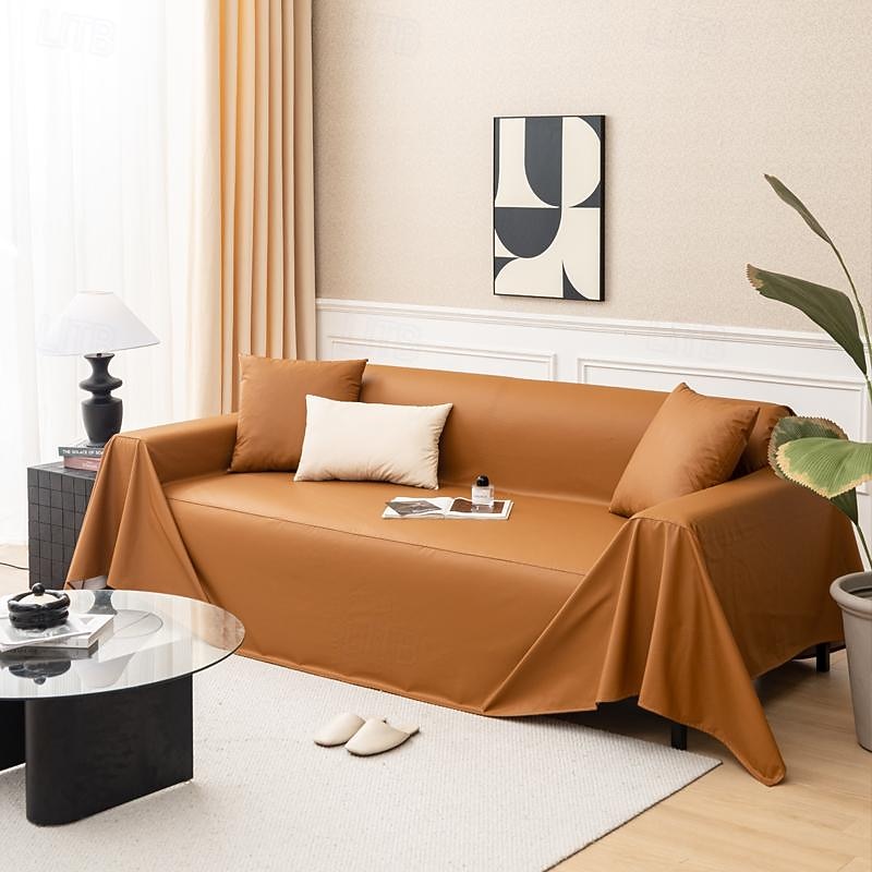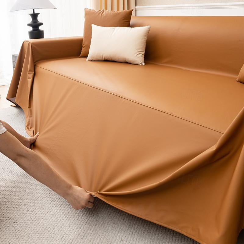 Highlights [Fabric] : Crafted from high-quality PU leather, this waterproof sofa cover ensures excellent protection against spills and pet scratches. The durable material features a solid color pattern and a reactive print design, offering a sophisticated yet practical addition to any home. [Fit] : Designed with a full-coverage style, this sofa cover comfortably fits a wide range of sofa sizes and shapes. Its loose-fitting nature allows for easy draping, ensuring a custom fit that enhances your living space's aesthetic. [Design Highlights] : The minimalist, plain design of this sofa cover is accentuated by its craftsmanship, providing both functionality and elegance. The cover's composition ensures it is dustproof and easy to maintain, needing only a wipe with a dry or slightly damp cloth to keep it looking fresh and stylish. [Occasions] : Ideal for protecting your sofa in any setting, this cover is perfect for homes with pets, families, or frequent gatherings. It combines style with practicality, making it suitable for daily use or special occasions where you want to impress guests with your impeccable taste in home decor. [Available Sizes] : With multiple size options ranging from 180x130cm to 180x380cm, this sofa cover is suitable for various furniture dimensions. It accommodates different sofa models, making it a versatile choice for enhancing and preserving the look of your living area.