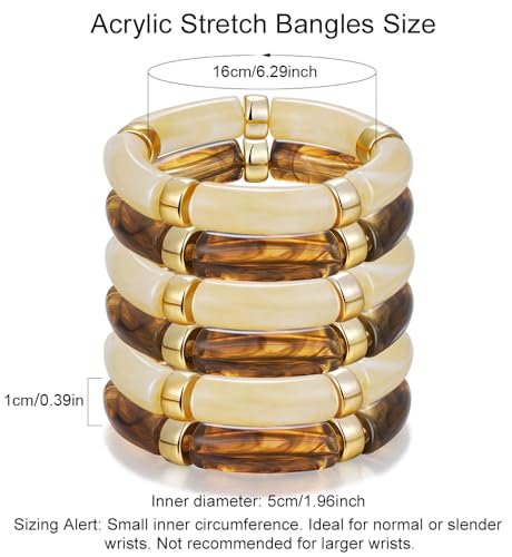iF YOU 6pcs Chunky Acrylic Bangle Bracelets for Women, Resin Bamboo Bead Stretchy Bracelet Stack, Fashion Jewelry for Women 6