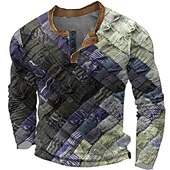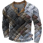 More information about Men's Graphic Patchwork Henley Shirt Waffle T Shirt Long Sleeve 3D Print Fashion Designer Casual Sports Outdoor Holiday Festival Spring & Fall Blue Brown Green Gray Henley Henley T-Shirt