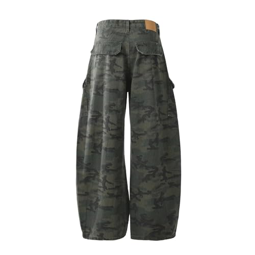 More information about Barrel Jeans Men Camo Cargo Baggy Skater Denim Pants Streetwear High Waist Barrel Leg Bottoms Camouflage Loose Fit Casual