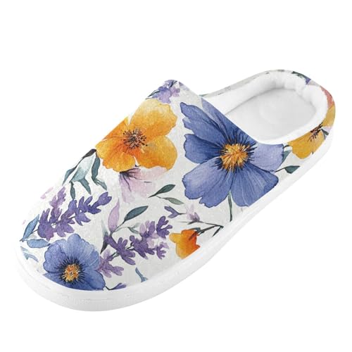 JUNZAN Spring Flowers Lavender Carnation Iris White Womens Cotton House Slippers Lightweight Memory Foam Indoor Shoes for Hospital Funny Presents 6-7 5