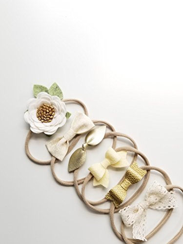 • 🎀 THE SET INCLUDES: One handmade wool felt rosette fresh linen and gold, one 100% Cotton floral Ivory-cream bow, a gold faux leather tied bow, a wool felt mini bow cream, an antique gold faux leather mini bow, and one adorable lace bow.
