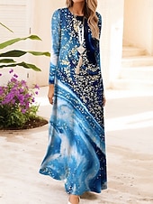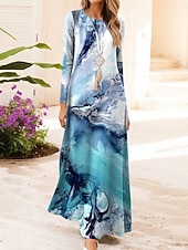 More information about Women's Maxi Dress Vintage Bohemian A Line Dress Crew Neck Long Sleeve Casual Daily Regular Fit Graphic Geometric Blue Orange Green Dark Blue Spring Fall Winter