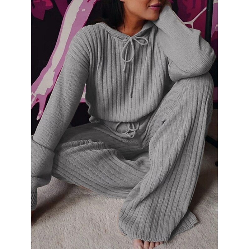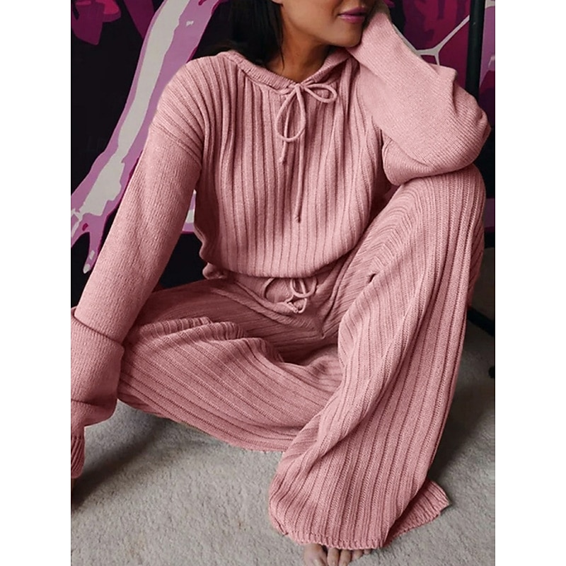 More information about Women's Fashion Streetwear Pants Sets Bolero Top Long Sleeve Hooded Solid Color Outdoor Casual Daily Black Pink Red Fall Regular Fit