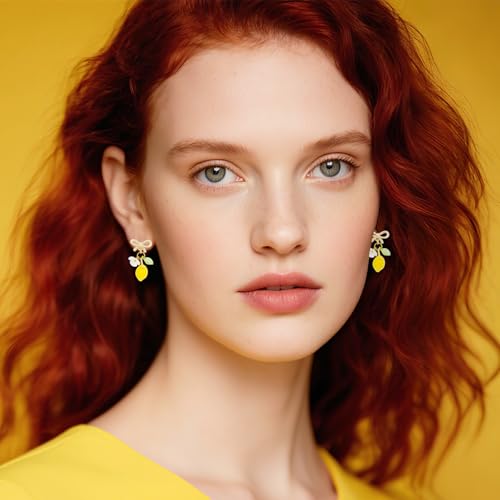 • Adorable Design: Our fruit earrings adopt a 3D lemon pattern design, which look the same as the real fruit, and are decorated with flowers and leaves, the yellow color is bright and playful, adding a touch of color to any outfit.