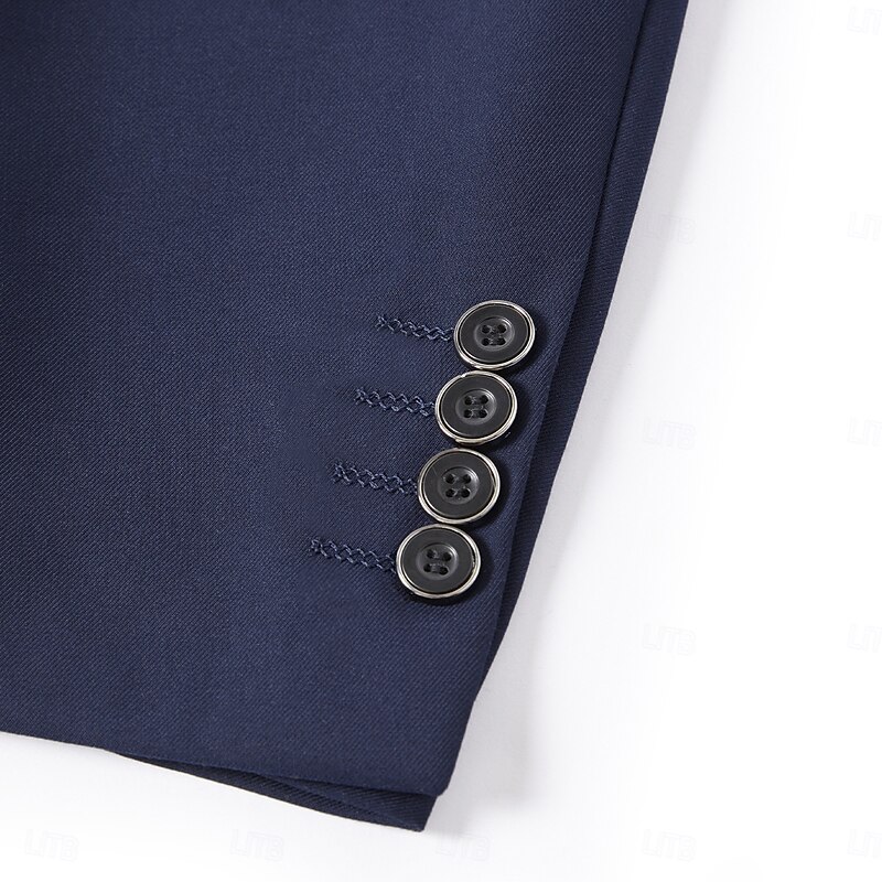 More information about Men's Business Suits Notch Lapel Navy Blue Fashion Formal Solid Colored Slim Fit 3 Piece Single Breasted Two-buttons